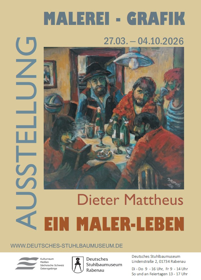 Dieses große bürgerliche Engagement würdigt nun die Personalausstellung für Dieter Mattheus in der Nachbarstadt Rabenau, wo der gemeinnützige Museumsverein das Deutsche Stuhlbaumuseum betreibt. Die Hochachtung vor seiner Lebensleistung und seiner anhaltenden kreativen Schaffensperiode im reifen Alter sind guter Anlass für eine Kooperation mit dem Kunst-Kreis-Bannewitz und das Schaffen der Möglichkeiten für tiefe Blicke ins Lebenswerk eines ganz bemerkenswerten Menschen.